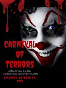 This Halloween Passion and Performance Arts Inc. is bringing you into our Carnival of Terrors, an immersive horror experience. Join us on October 29th at the Crystal Garden for this terrifying event.